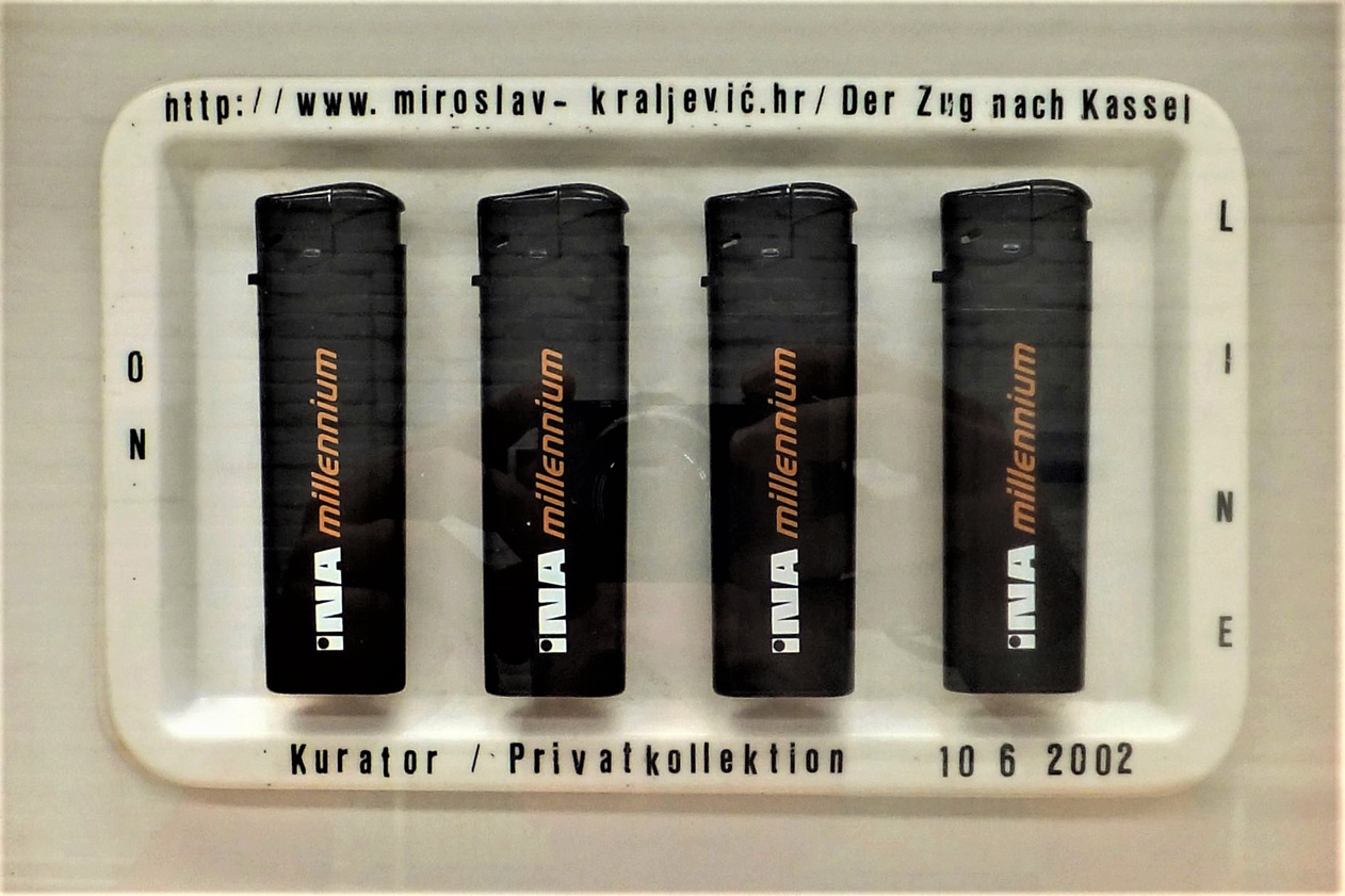 The first part of the collection’s title, Der Zug nach Kassel, refers to the eponymous programme within the project’s framework, conceived as a ‘curatorial’ presentation of the aforementioned collection on a ‘train’ from Zagreb to Kassel, on the occasion of the prestigious event documenta in Kassel. The conceptual intent of such presentation is to apostrophise the ‘presence’ of the Croatian contemporary art scene and its ‘participation’ at this significant event of contemporary art – by means of a single art project. Related to the aforementioned intent, a kind of trailer for the collection is the stop motion photo animation entitled Der Zug nach Kassel from 2012, in which a virtual train heralds its journey to Kassel. On the occasion of the 13th edition of documenta in Kassel in 2012, the exhibition Der Zug nach Kassel – Kurator/Privatkollektion was held at POT Gallery in Kassel, at which the artist presented most of the works from the collection, thus indirectly ‘approximating’ selected Croatian artists to the participation at documenta in Kassel. Alongside Kassel, the exhibition was also held at SC Gallery in Zagreb that same year. The final presentation of the project on the digital train through a website, as well as the website itself, will be fully activated in 2022, at the beginning of the 15th edition of documenta in Kassel. Online access to the collection and its adaptation for online distribution (website, digital guides, links within the web) enable a continuation of the programme Der Zug nach Kassel and its connection to the 2022 documenta in Kassel.